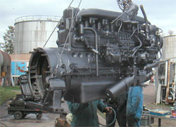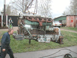Det var motorn från Sunnebussen dom pysslade med igår kväll. I regnet, stackarna. |