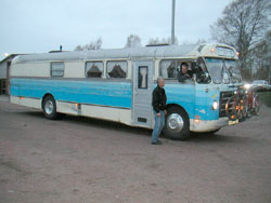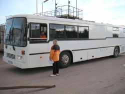 Det droppade in bussar lite då å då under dagen. Maggan tar emot |