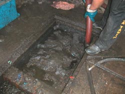 Han skulle fixa till brunnen i tvätthallen.